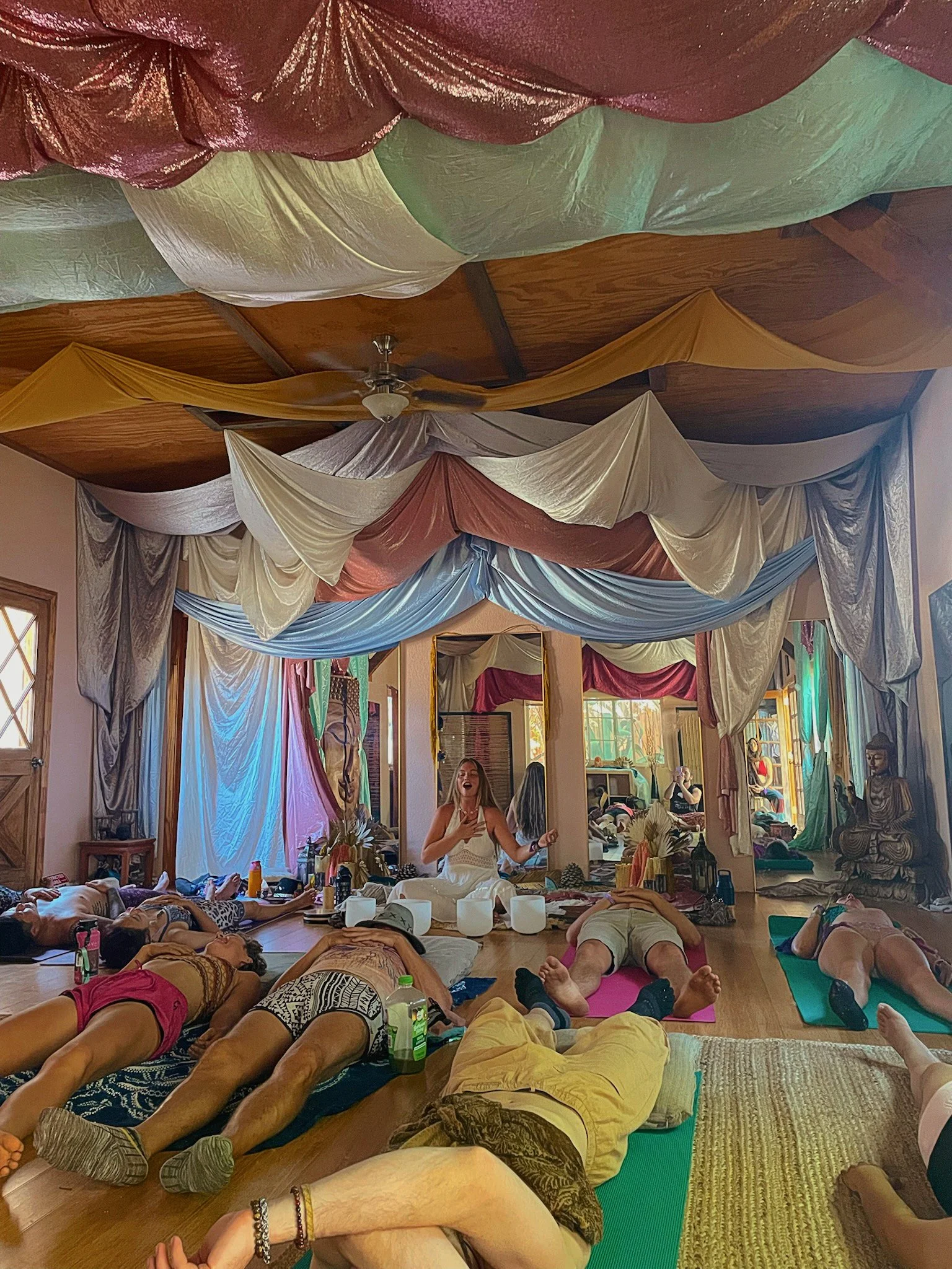 She has facilitated sound healing experiences across Costa Rica, Nicaragua, and the U.S.—including Sanctuary Music Festival, High Vibe Festival, and Deep Tropics Festival. She leads weekly sound baths and Reiki sessions at HAUM Sound Bath Speakeasy in Nashville as well as guiding sessions at Pure Sweat and Sauna, YogaSix, and leading breathwork at various retreats.